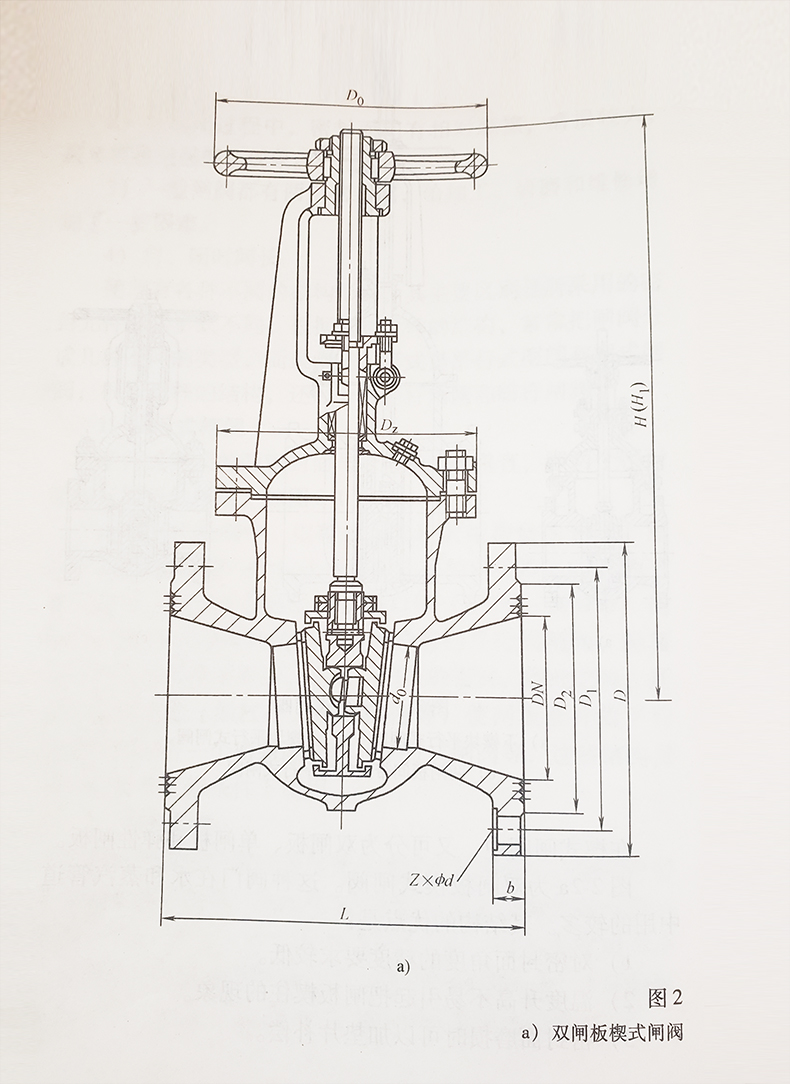 在楔式闸阀中,又可分为双闸板、单闸板和弹性闸板。图2-2a为双闸板楔式闸阀。这种阀门在水和蒸汽管道中用的较多。其结构的优点是:
