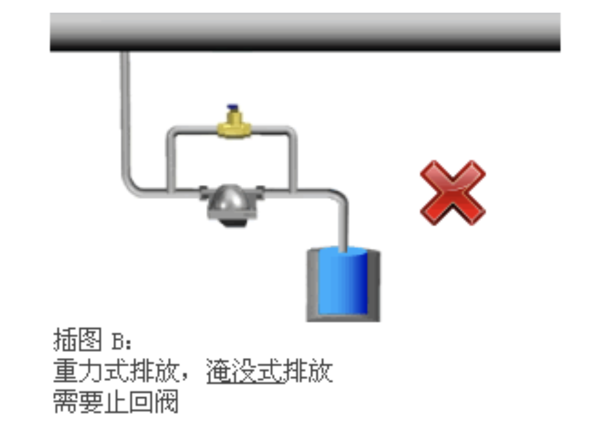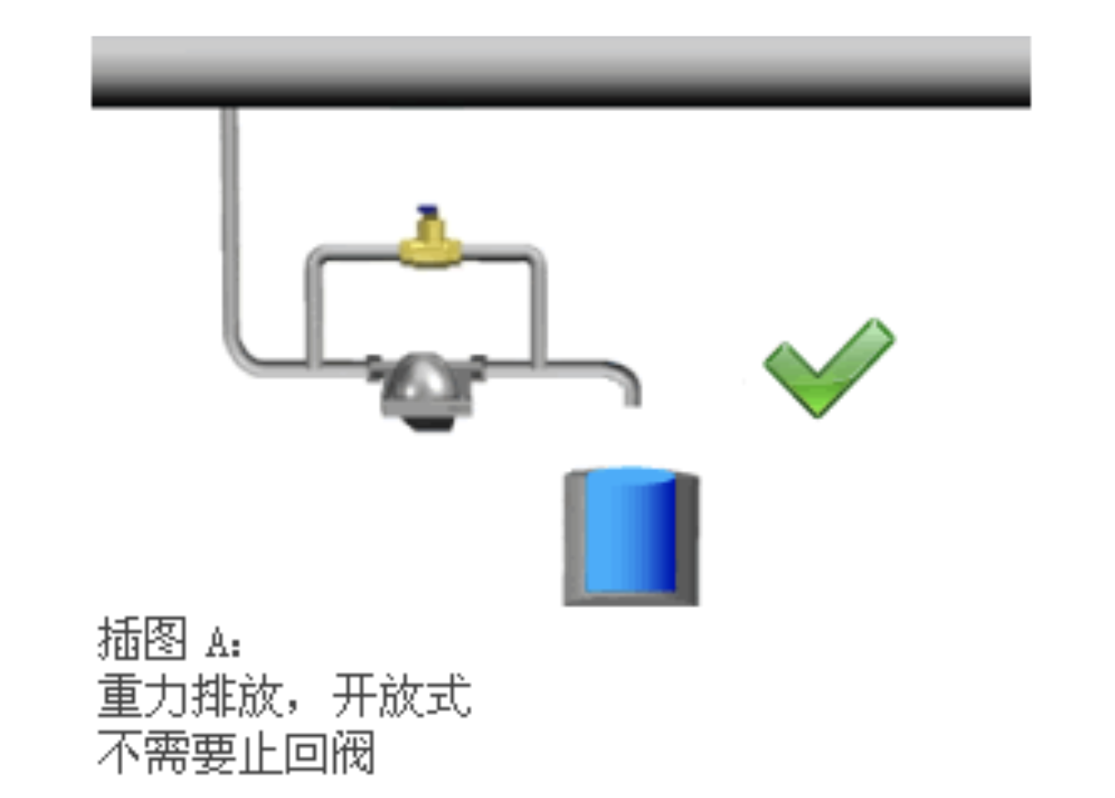 如果蒸汽疏水阀是通过单独的排水管向下排放至大气时,通常没有倒流危险,因此不必安装止回阀。
