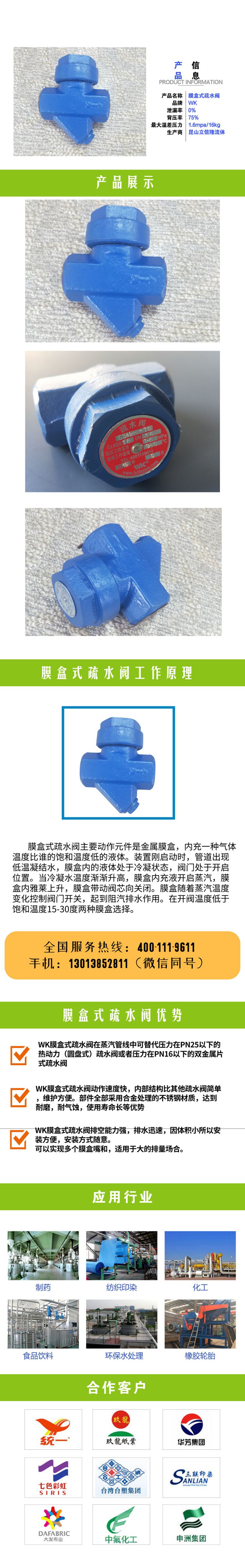 WK膜盒式蒸汽疏水阀动作速度快,内部结构比其他疏水阀简单,维护方便,部件全部采用合金处理的不锈钢材质,达到耐磨,耐气蚀,使用寿命等优势。